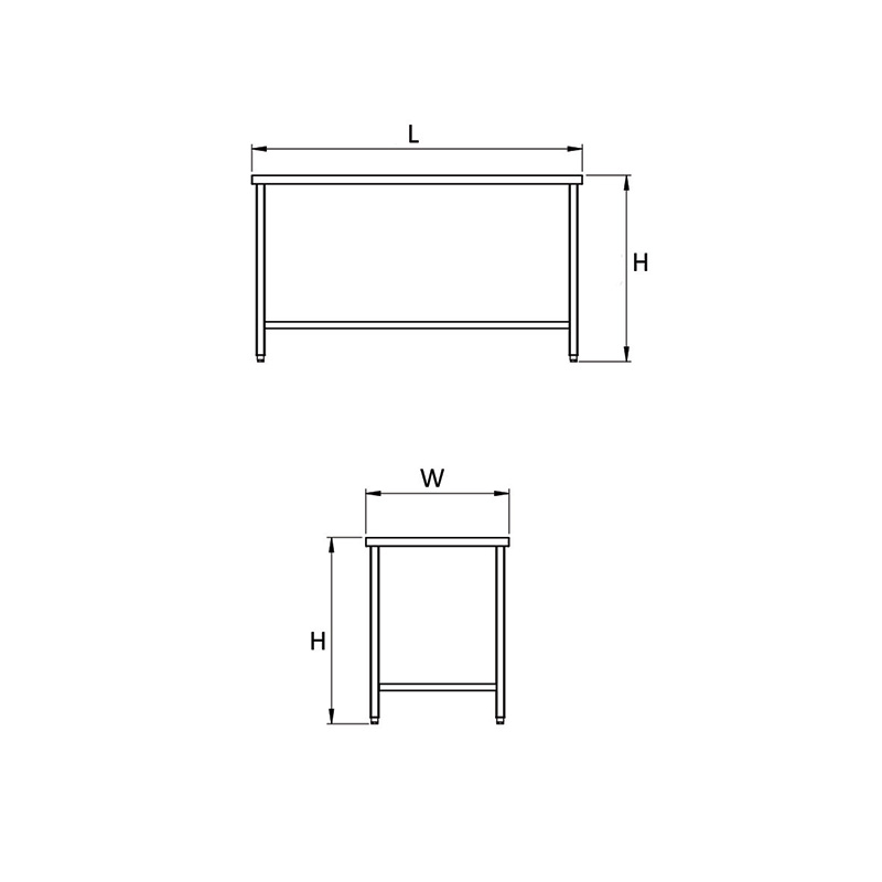 Shelves: Stainless Steel, 0.8 mm thickness, one bottom shelf.
