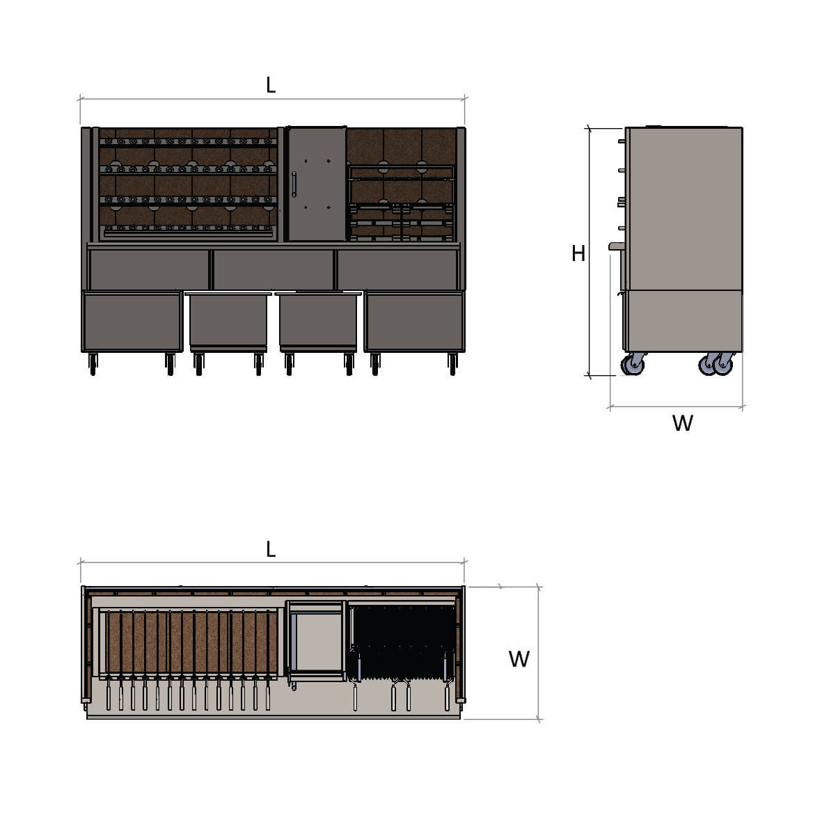 Motor source: 220V/1ph/50Hz.Storage Charcoal Zone: Dimensions