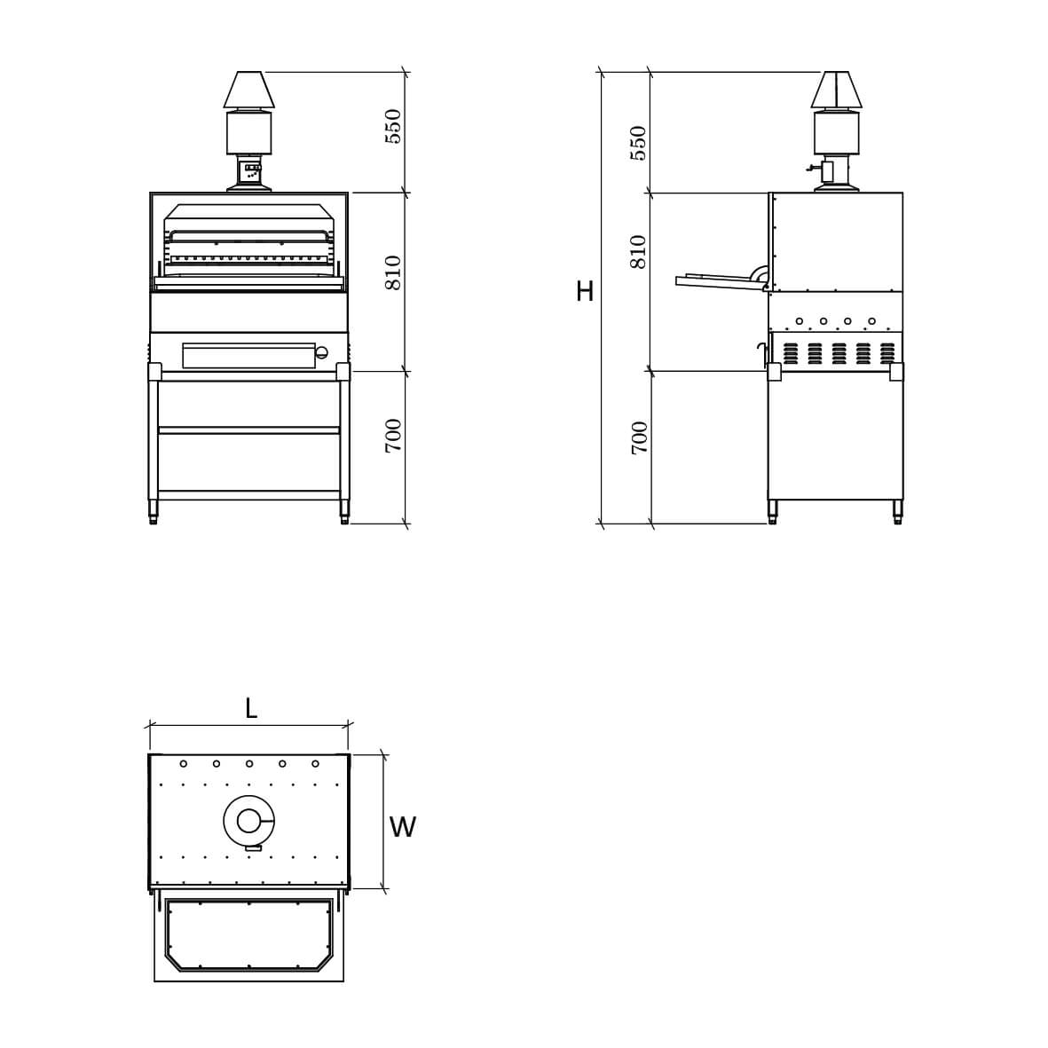 Chamber height (340mm) .Control: Stainless steel cowl,diameter 200mm, height (550), Smoke outlet vent, Fire break