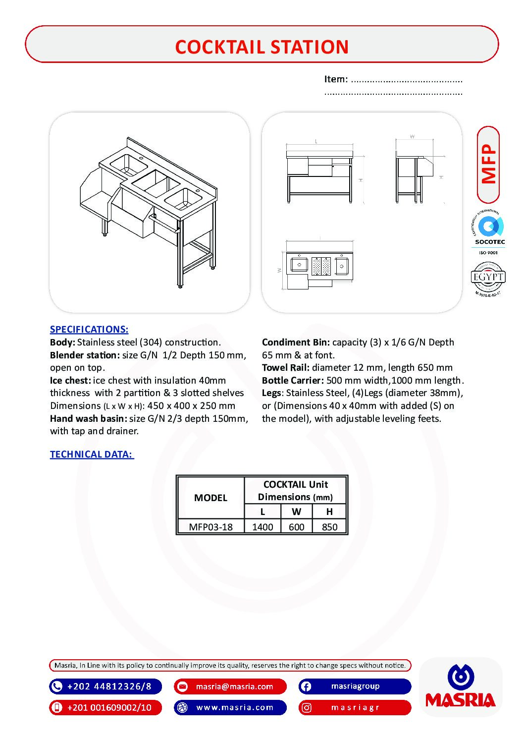 MASRIA is one of the leading companies in Egypt specialized in the field of commercial kitchen and laundry projects.