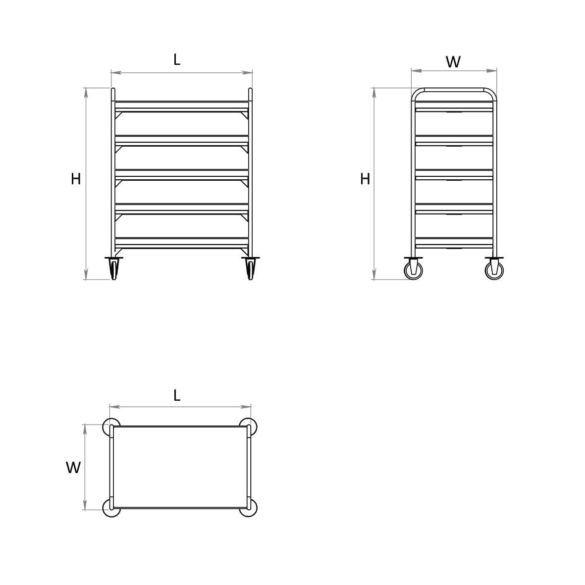 Four shelves utility service trolley                   950 X550X 1200                                   4