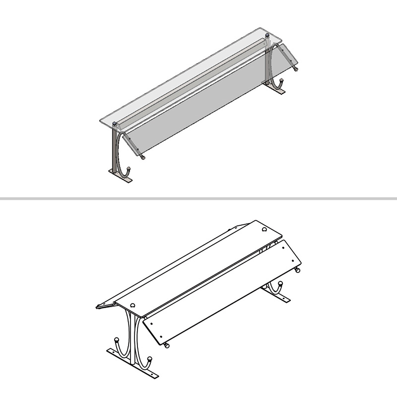 Glass: Securit glass, one (1), shelf width 280 mm, ‎Length as indicated in the table & Front, sneeze ‎glass width 220 mm, with length of