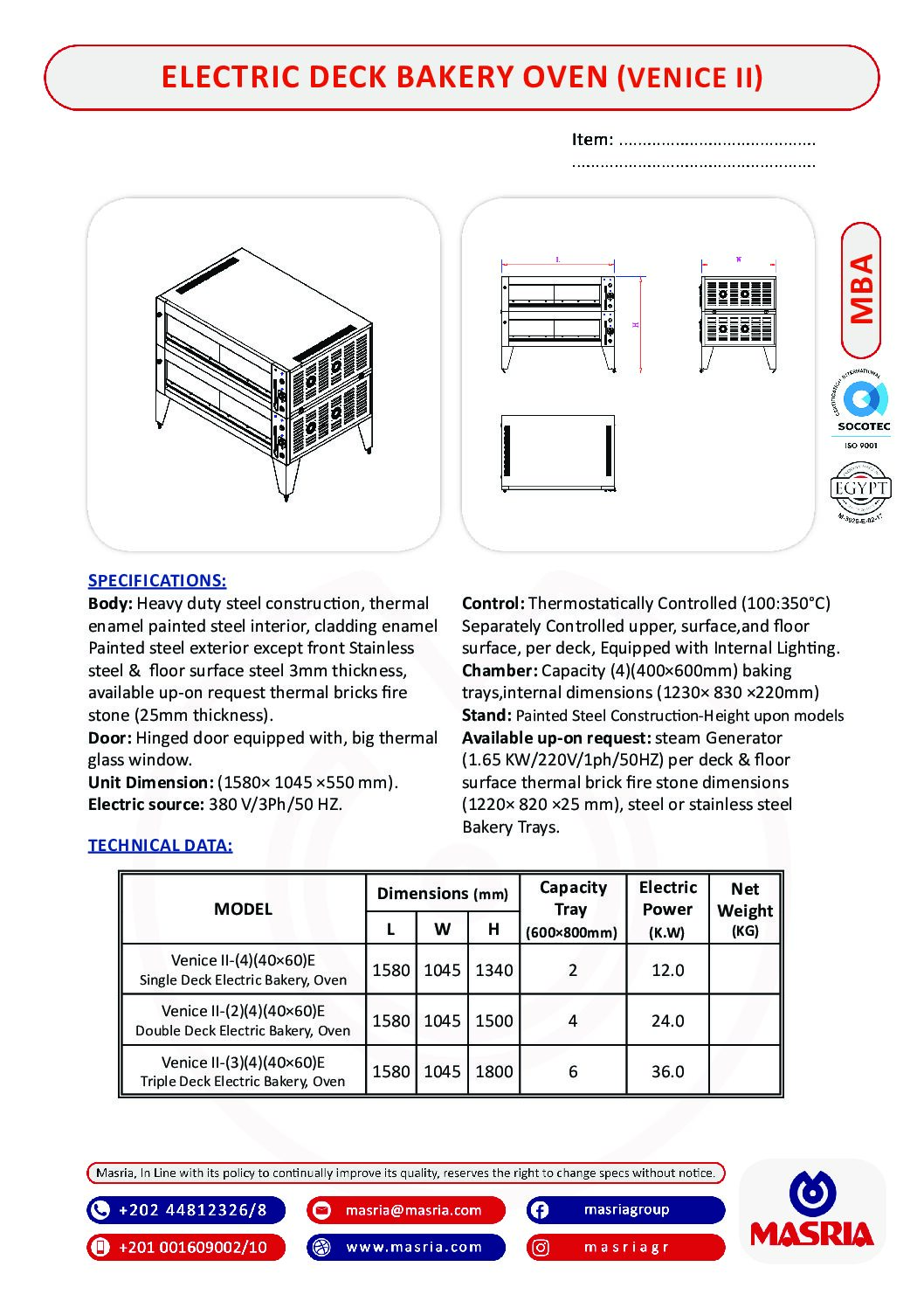 Double Deck Electric Bakeing Oven (Venice IIER)