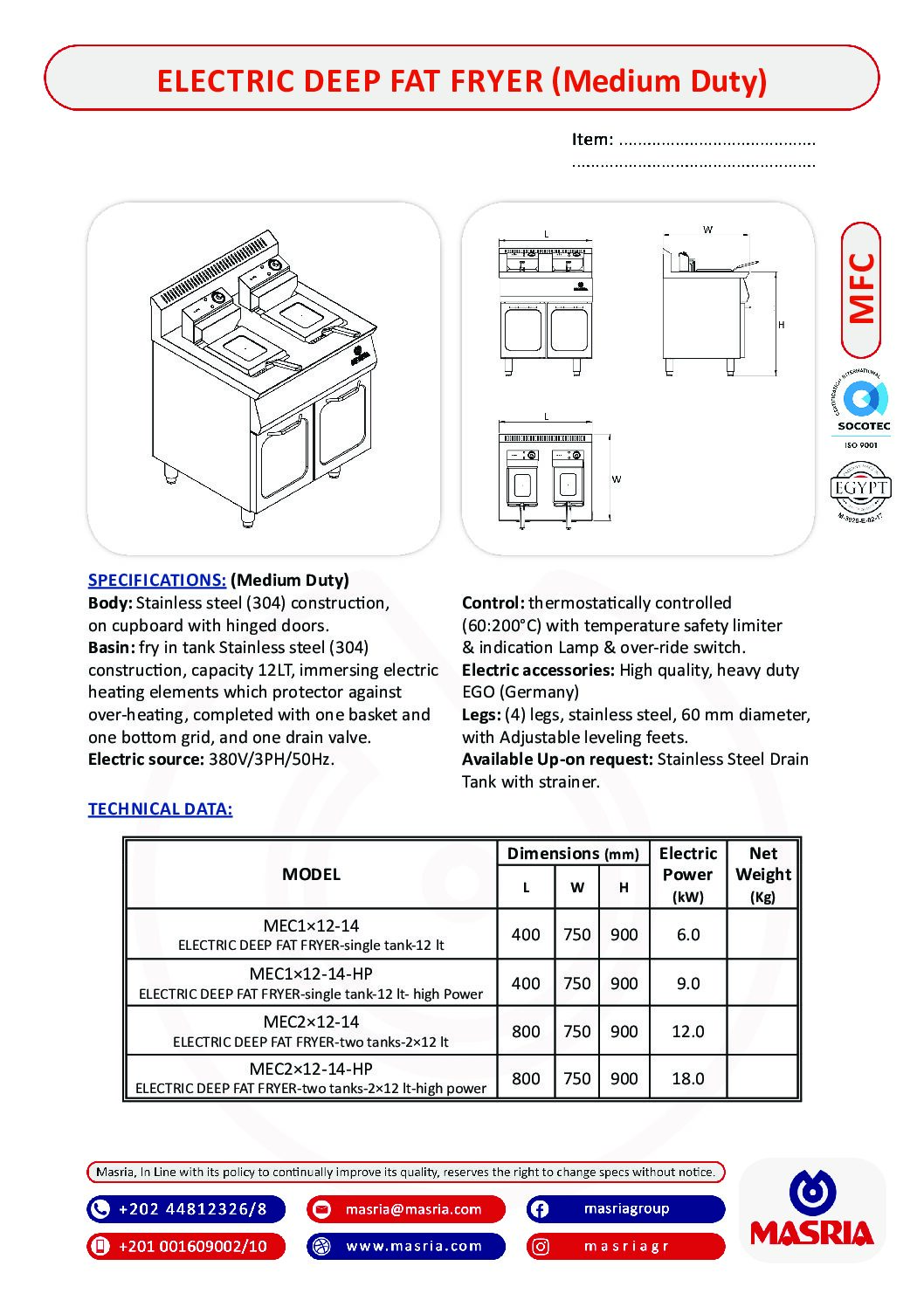 MODEL (MEC1 × 12-14) -Dimensions (400×750×900) – Electric Power 6.0(kW).