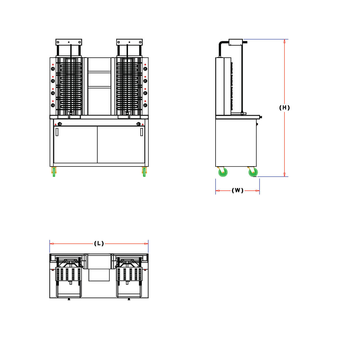 sliding doors, Drop-In at right hand side (3) G/N 1/6 for one rode Model OR at middle for (2) rods model and (2) shelve at back for (2) rods model