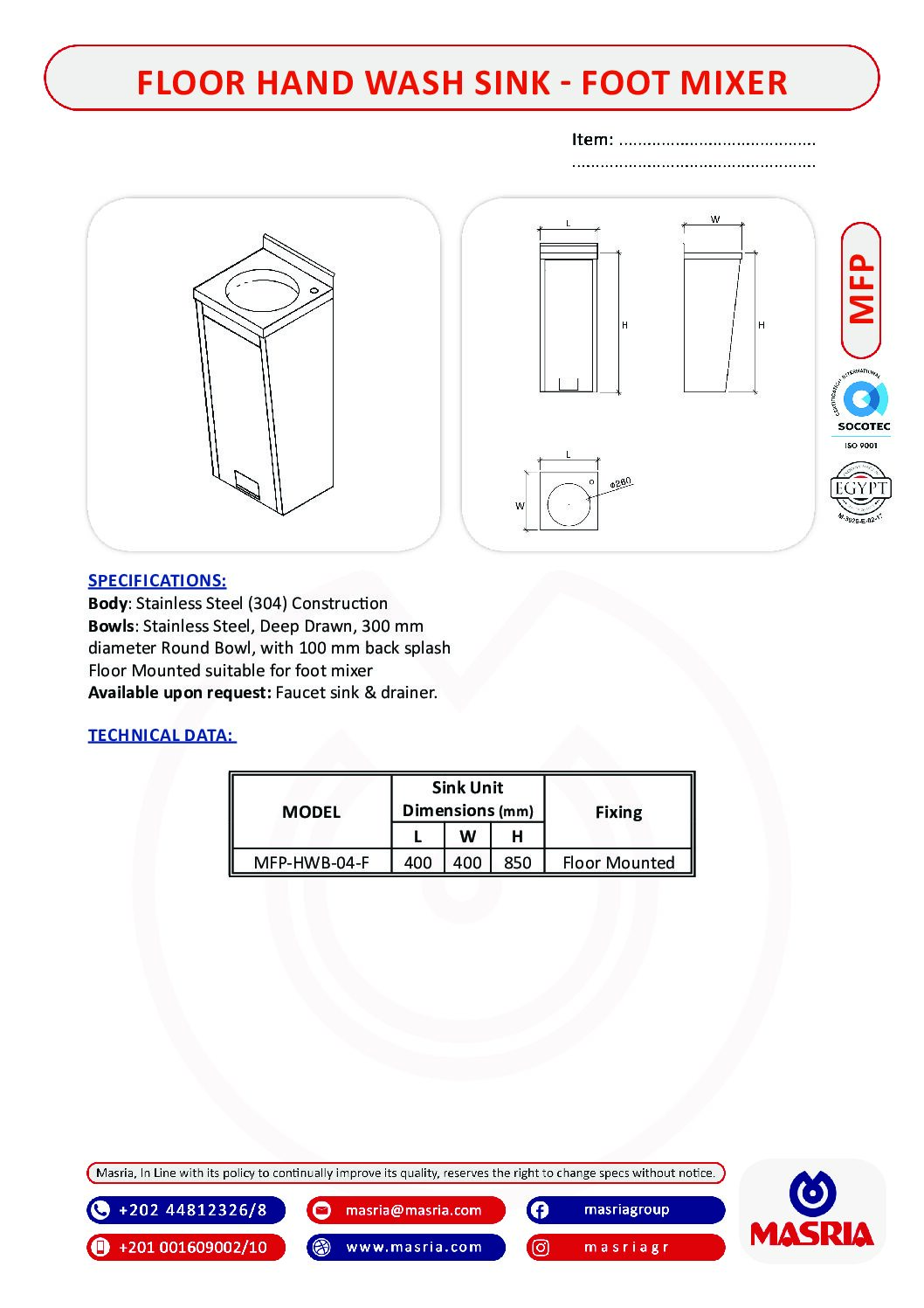 MFP-HWB-04-F            400 x400x 850                                               Floor Mounted