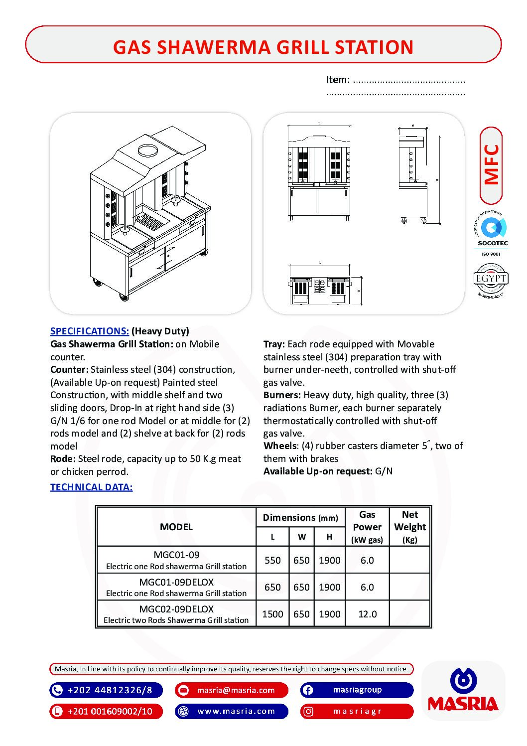 MODEL (MGC02-09DELOX) – Dimensions (1500×650×1900) – Gas Power 12.0 (kw).