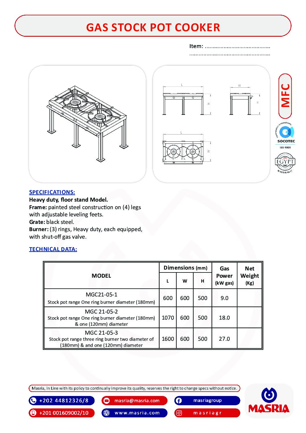 MASRIA is one of the leading companies in Egypt specialized in the field of commercial kitchen and laundry projects.