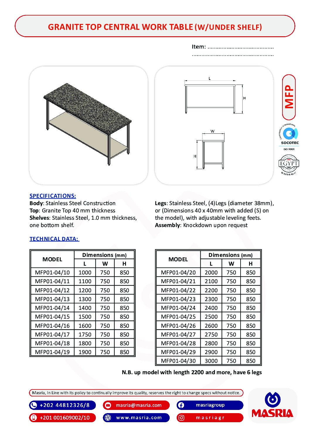 Legs: Stainless Steel, (4)Legs (diameter 38mm), or (Dimensions 40 x 40mm with added (S) on the model), with adjustable Leveling feets.