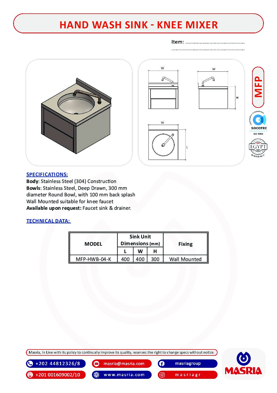 MODEL Sink Unit Dimensions (mm)L W H Fixing
