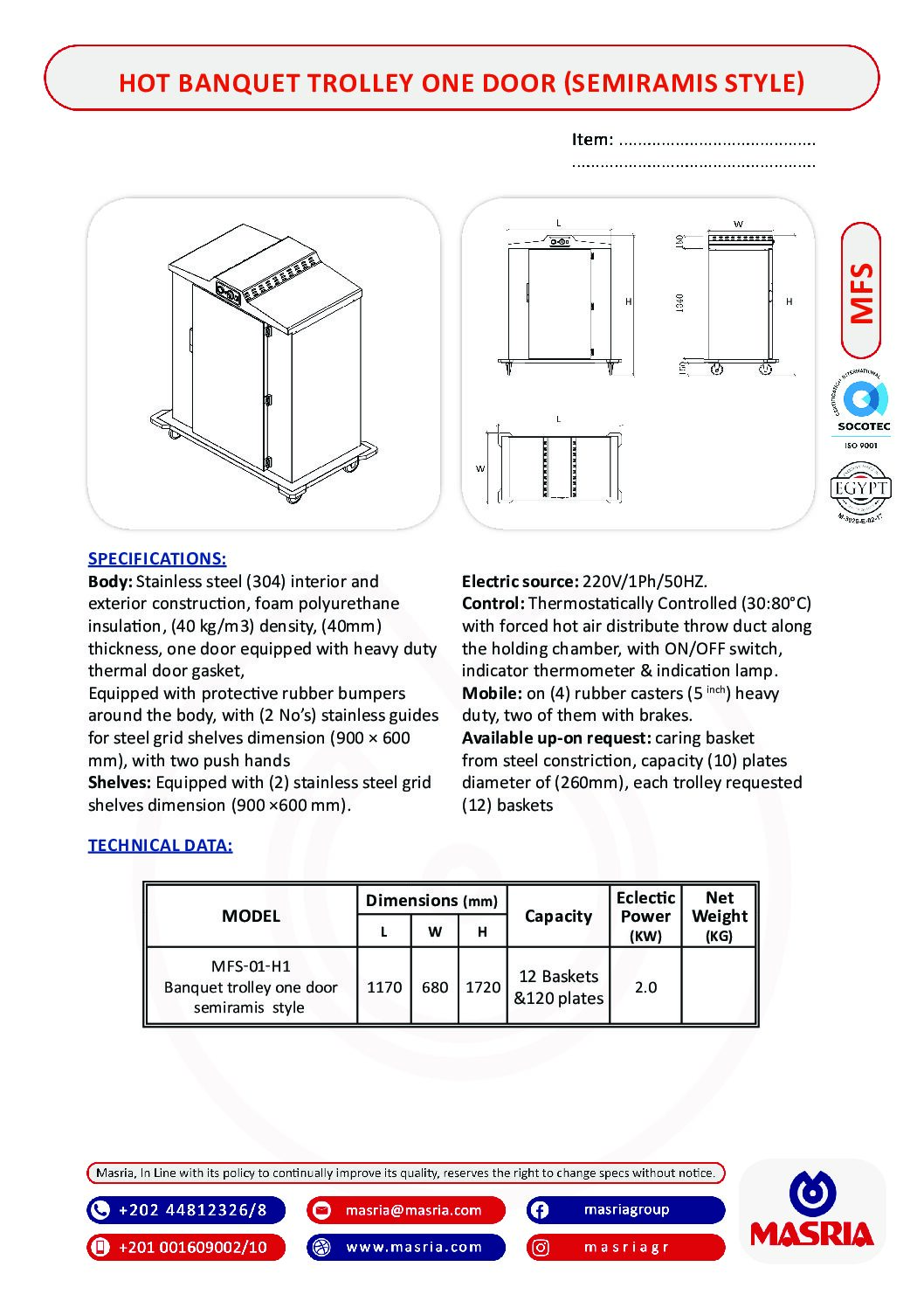 Banquet trolley one door