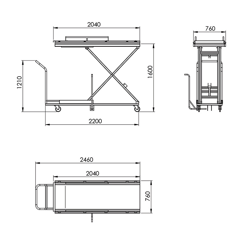 Hydraulic mortuary lifting trolley                                     760x    2200 /2040 x 1210/1600‎