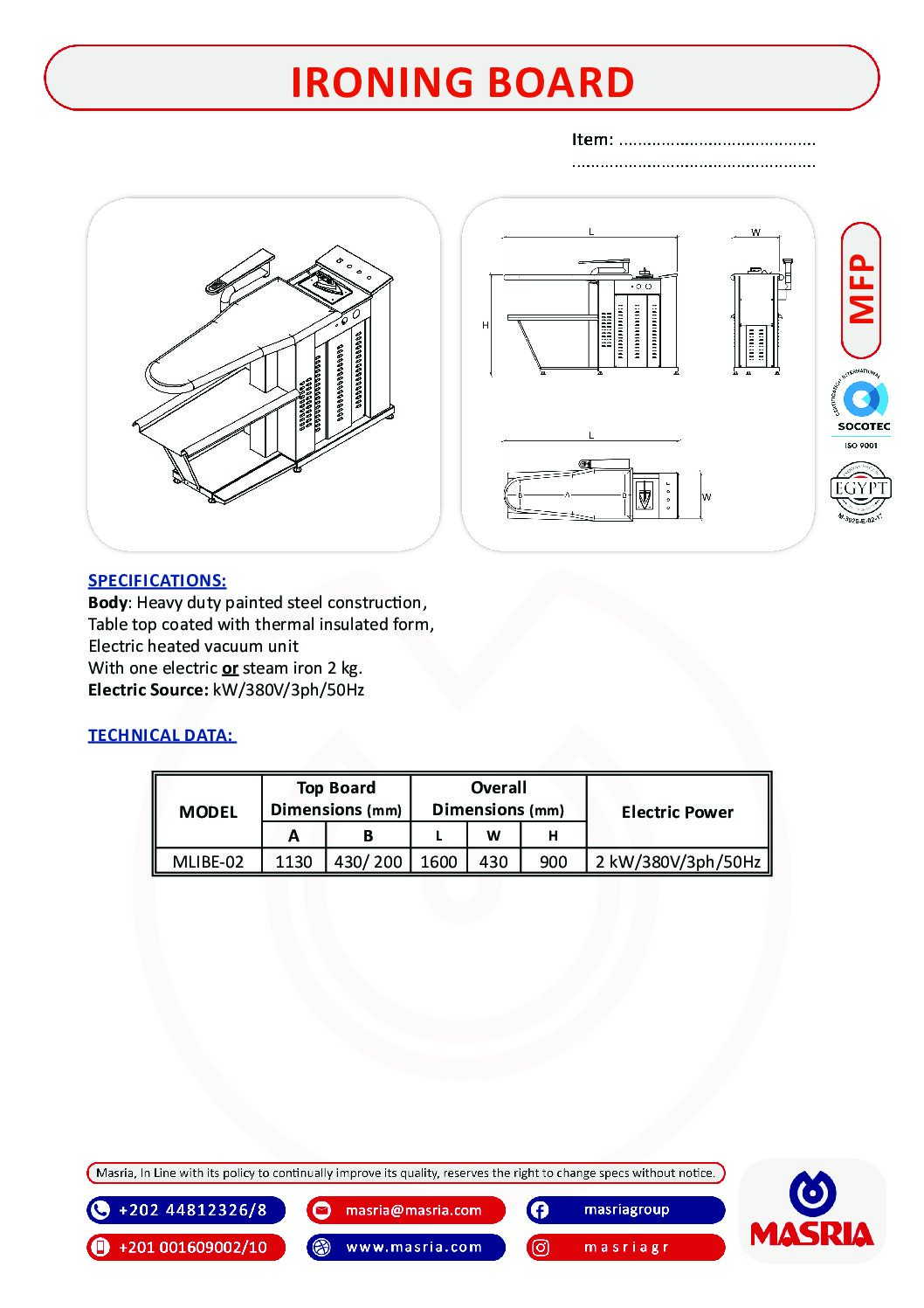 MASRIA is one of the leading companies in Egypt specialized in the field of commercial kitchen and laundry projects.