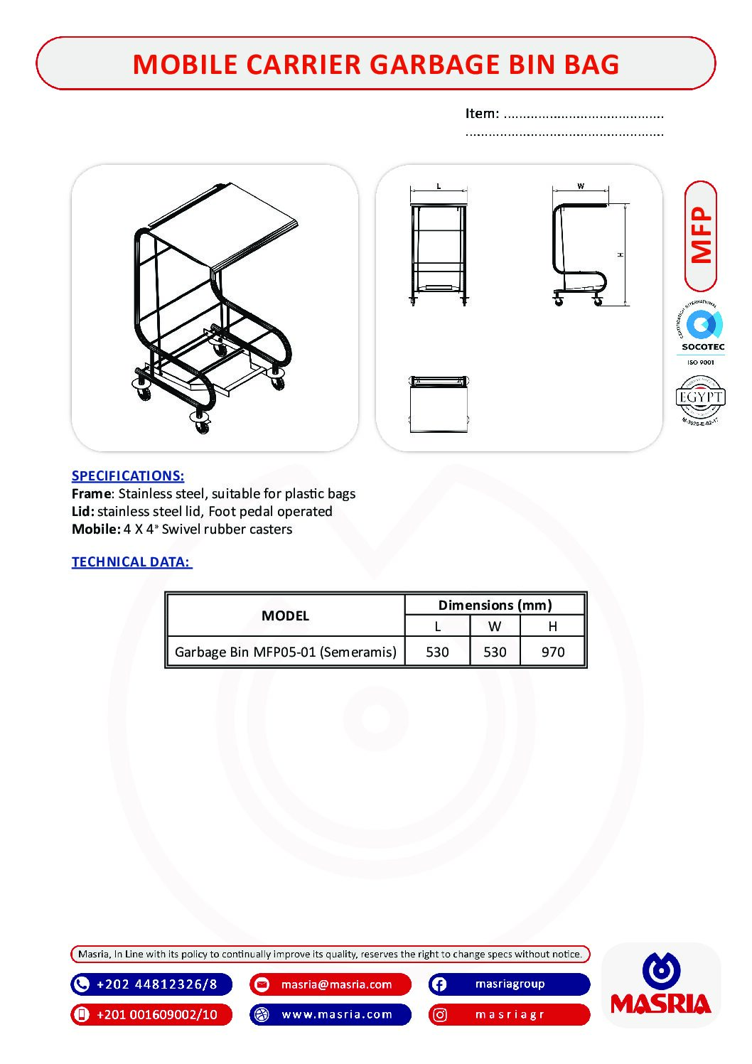 Garbage Bin MFP05-01 (Semeramis) 530x 530 x970