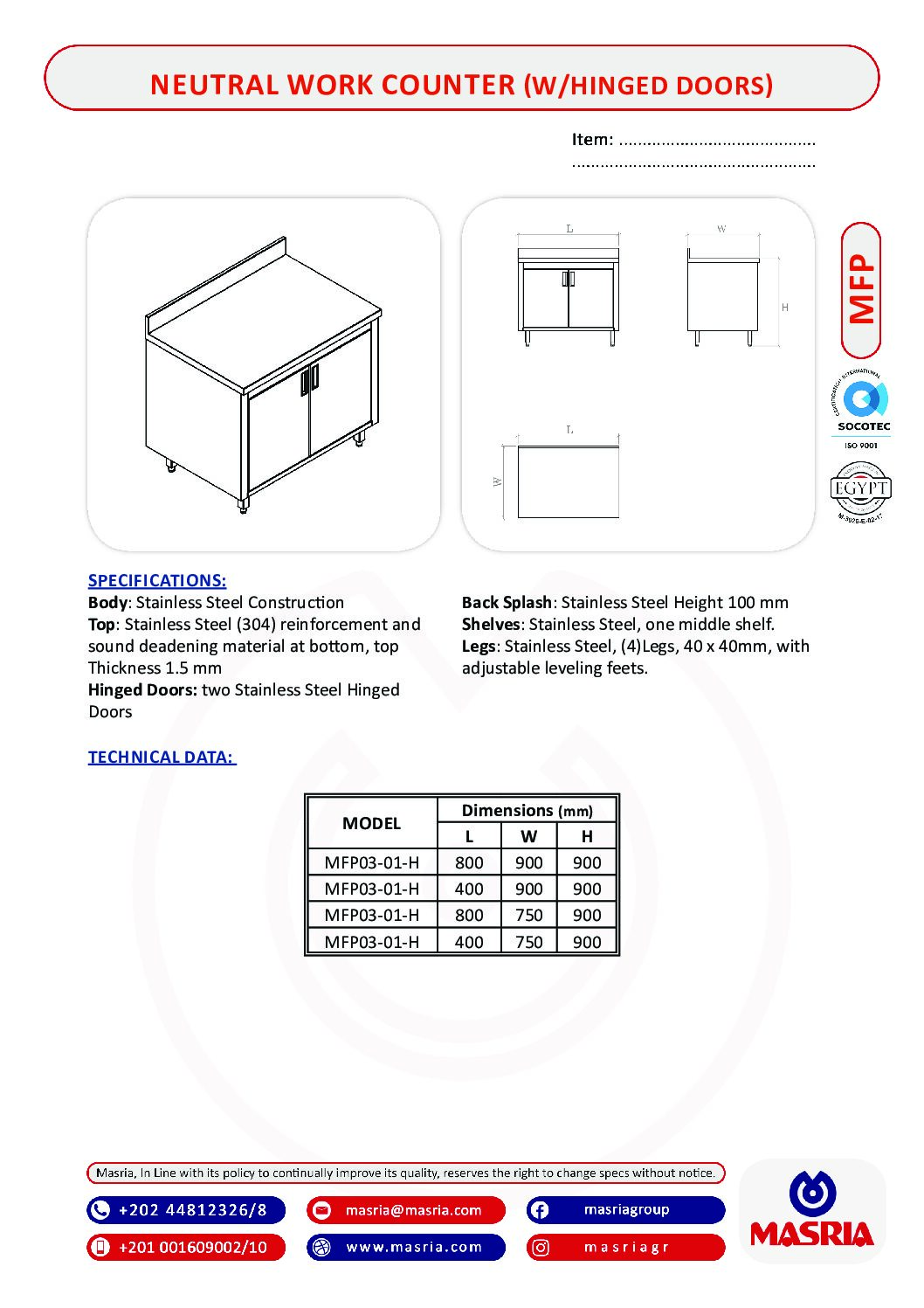 MFP03-01-H                            800x 900x 900