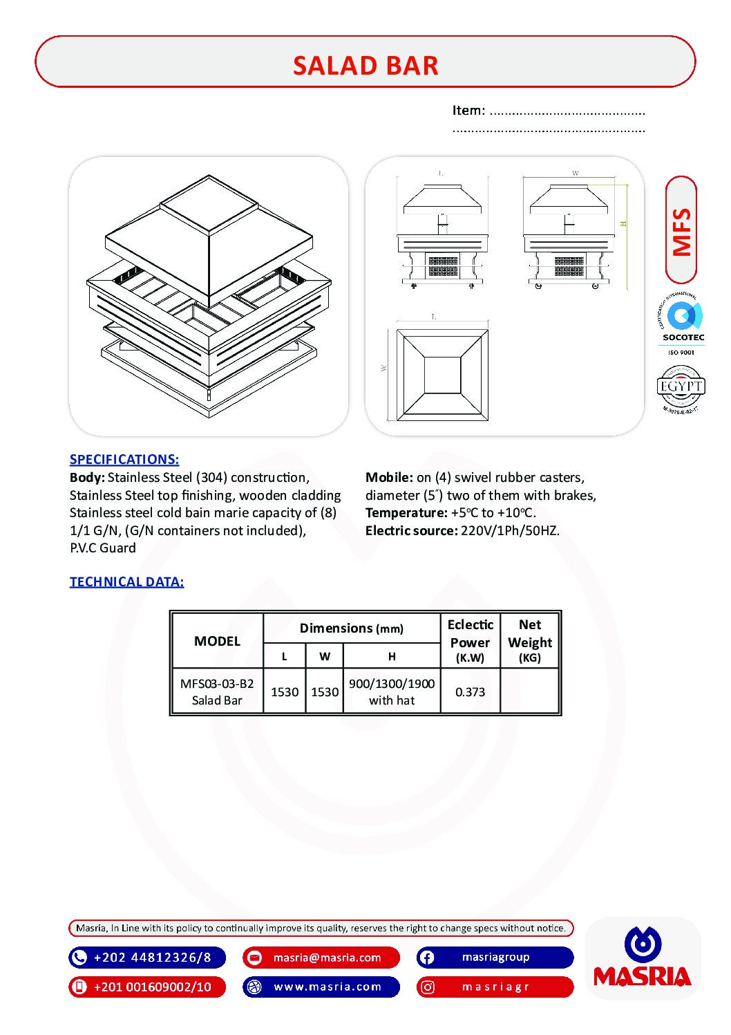 MFS03-03-B2 Salad Bar 1530X 1530X 900/1300/1900 with hat 0.373
