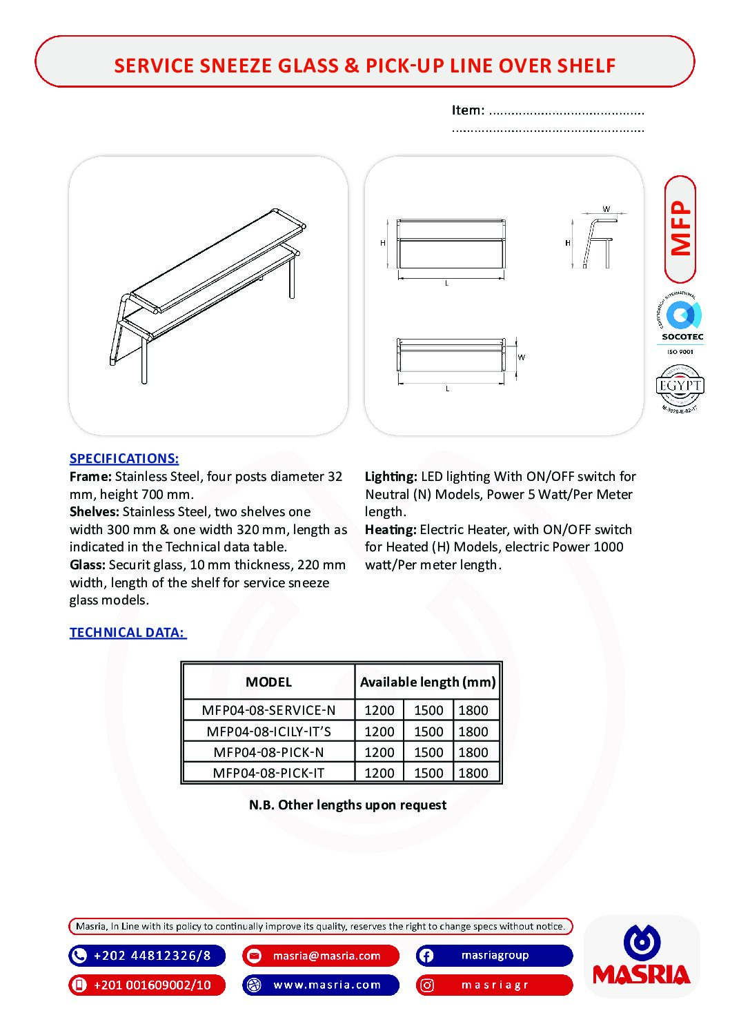SERVICE SNEEZE GLASS & PICK-UP LINE OVER SHELF