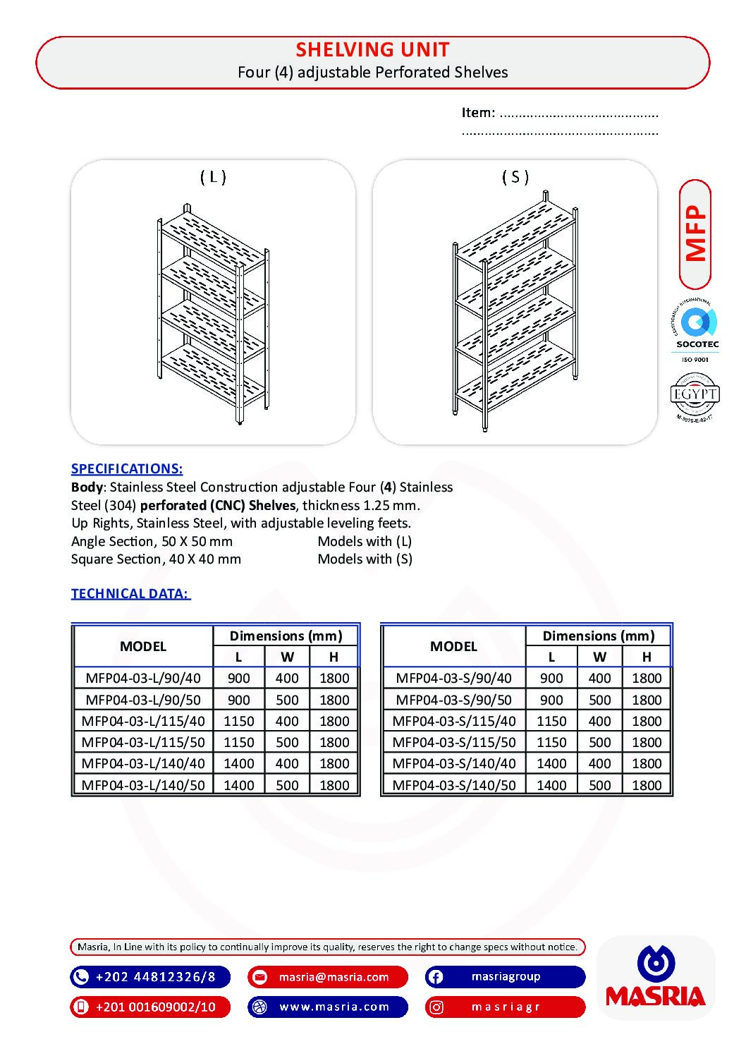 Steel (304) perforated (CNC) Shelves, thickness 1.25 mm.