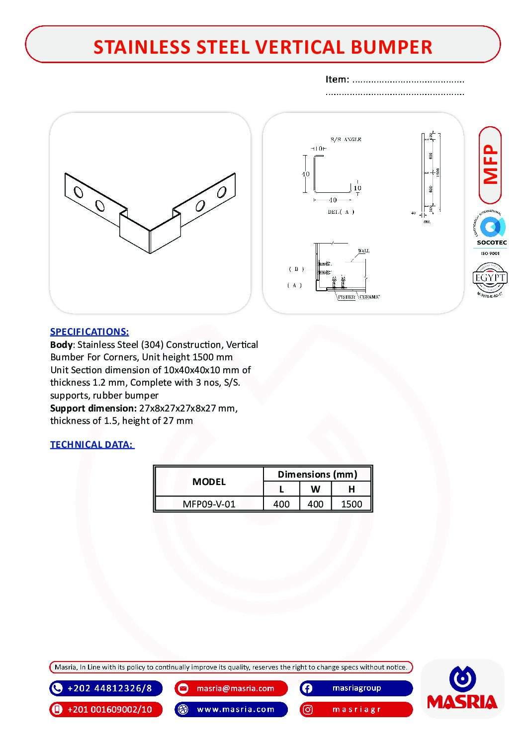 MFP09-V-01                               400 x400x 1500