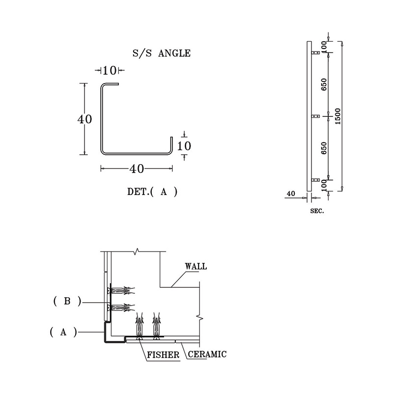 Unit Section dimension of 10x40x40x10 mm of thickness 1.2 mm, Complete with 3 nos, S/S.supports, rubber bumper