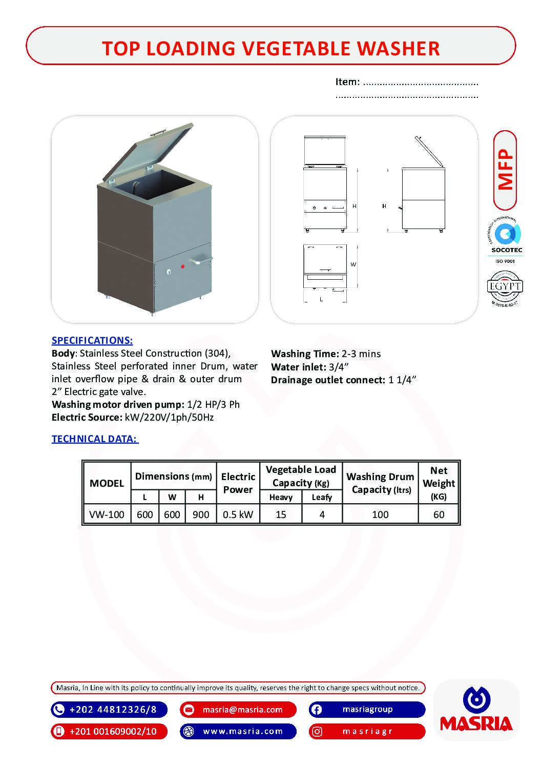 Electric Source: kW/220V/1ph/50Hz