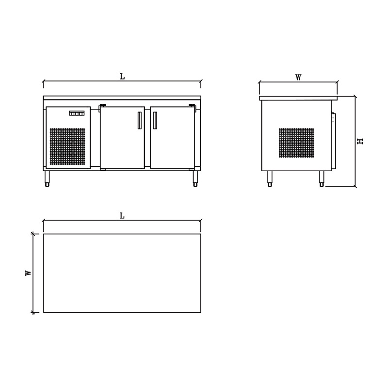 UNDER COUNTER REFRIGERATOR three doors