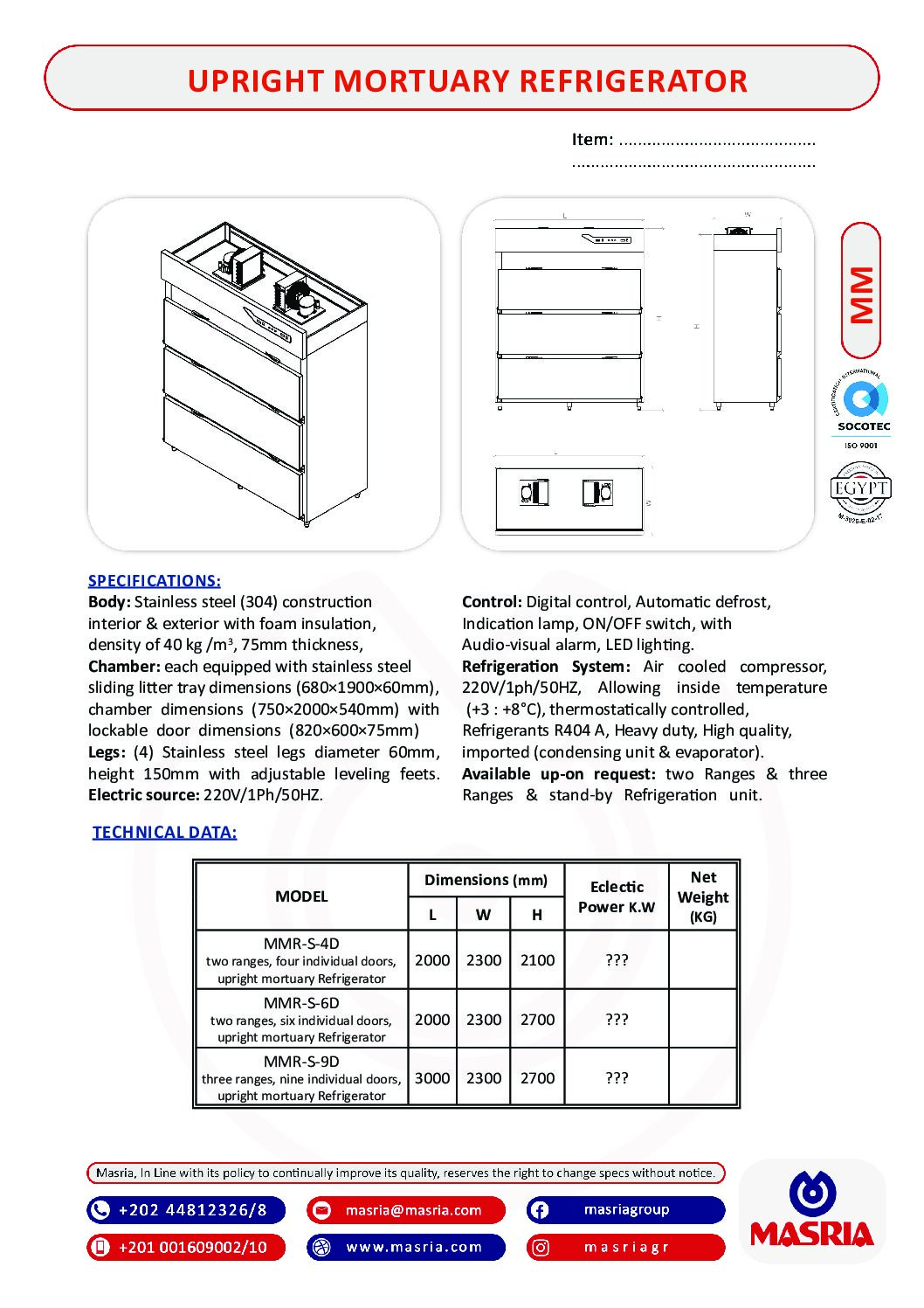 • UPRIGHT MORTUARY REFRIGERATOR