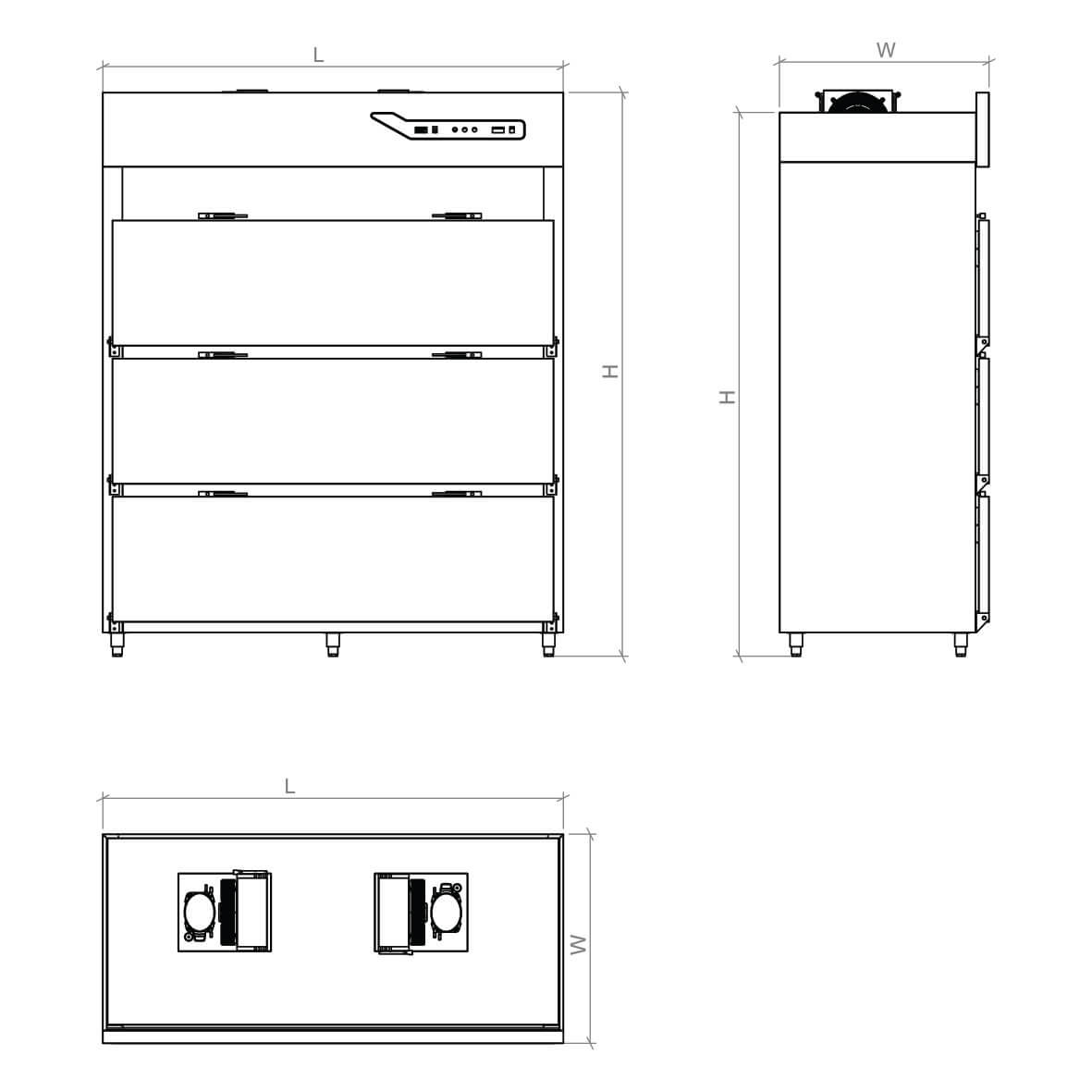 height 150mm with adjustable leveling feets.